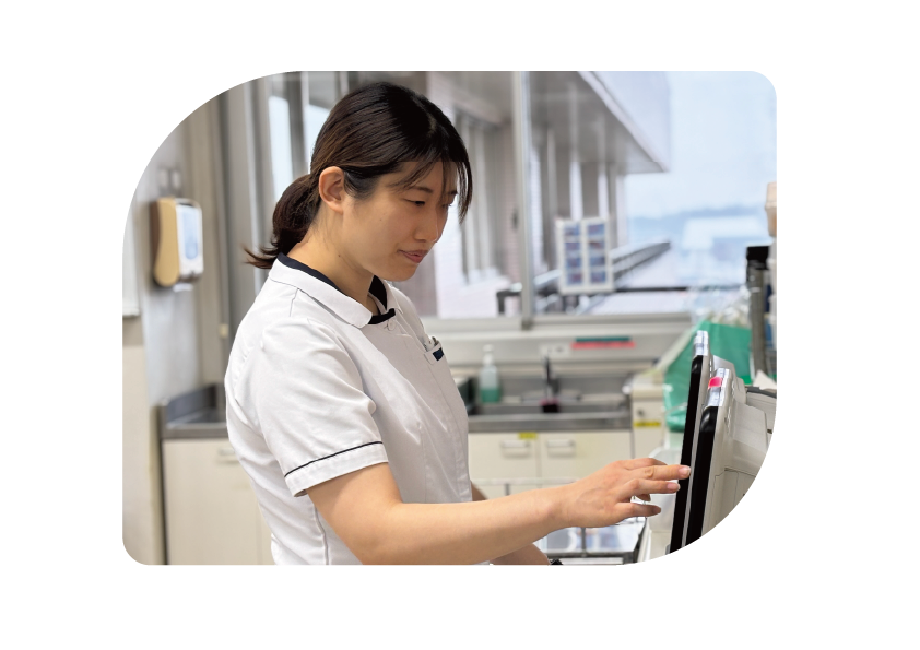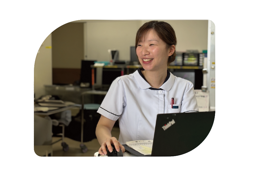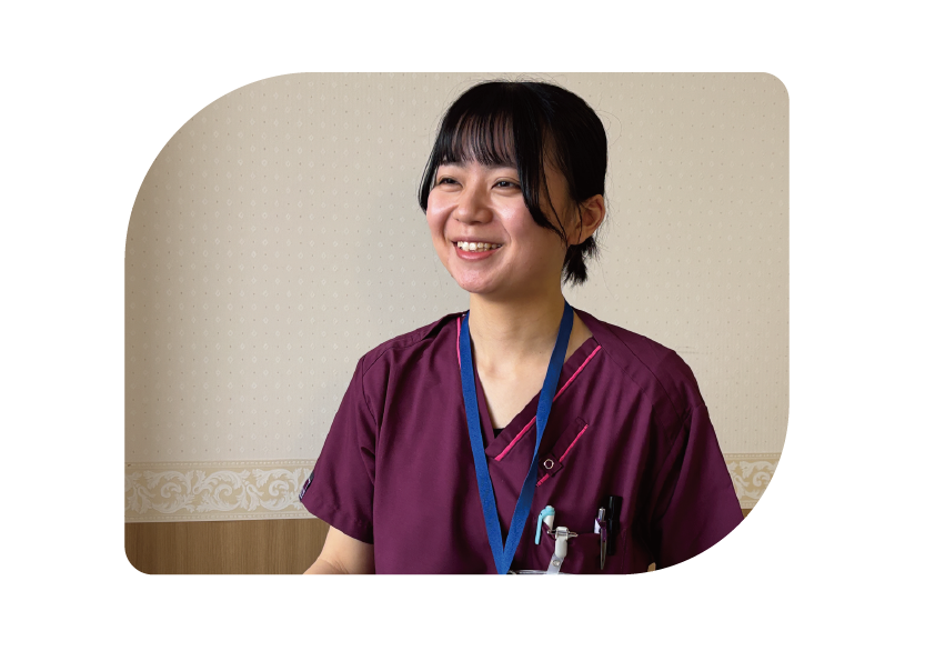 看護師として働き始めた当初は、何をするにも時間がかかり、悩むことが多くありました。命に直結する責任の重さを実感し、精神的にも体力的にも大変でしたが、少しずつ仕事に慣れ、患者さんをサポートできるようになってきたことに喜びを感じています。まだ不安なことも多いですが、さらに成長できるよう努力していきたいです。