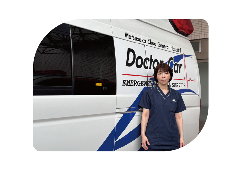 ドクターカーに乗って患者さんの救命に携わりたいという思いがあり、救急病棟を希望しました。救急病棟では、様々な疾患の患者さんが緊急入院となるため、幅広い知識が求められます。災害支援ナースやICLS、INARSインストラクターなど研修を通じて学び、日々の患者さんのケアや看護に活かせるよう努めています。