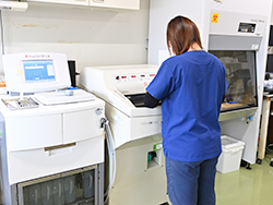 患者さんから採取された、臓器や細胞などの検査を行う部門です。 主に病理組織学的検査と細胞診検査があります。 当院では2008年当初より病理検査システムを導入し、受付業務、診断業務、統計処理などの業務をより効率的かつ簡素化し病理検査業務を行っています。