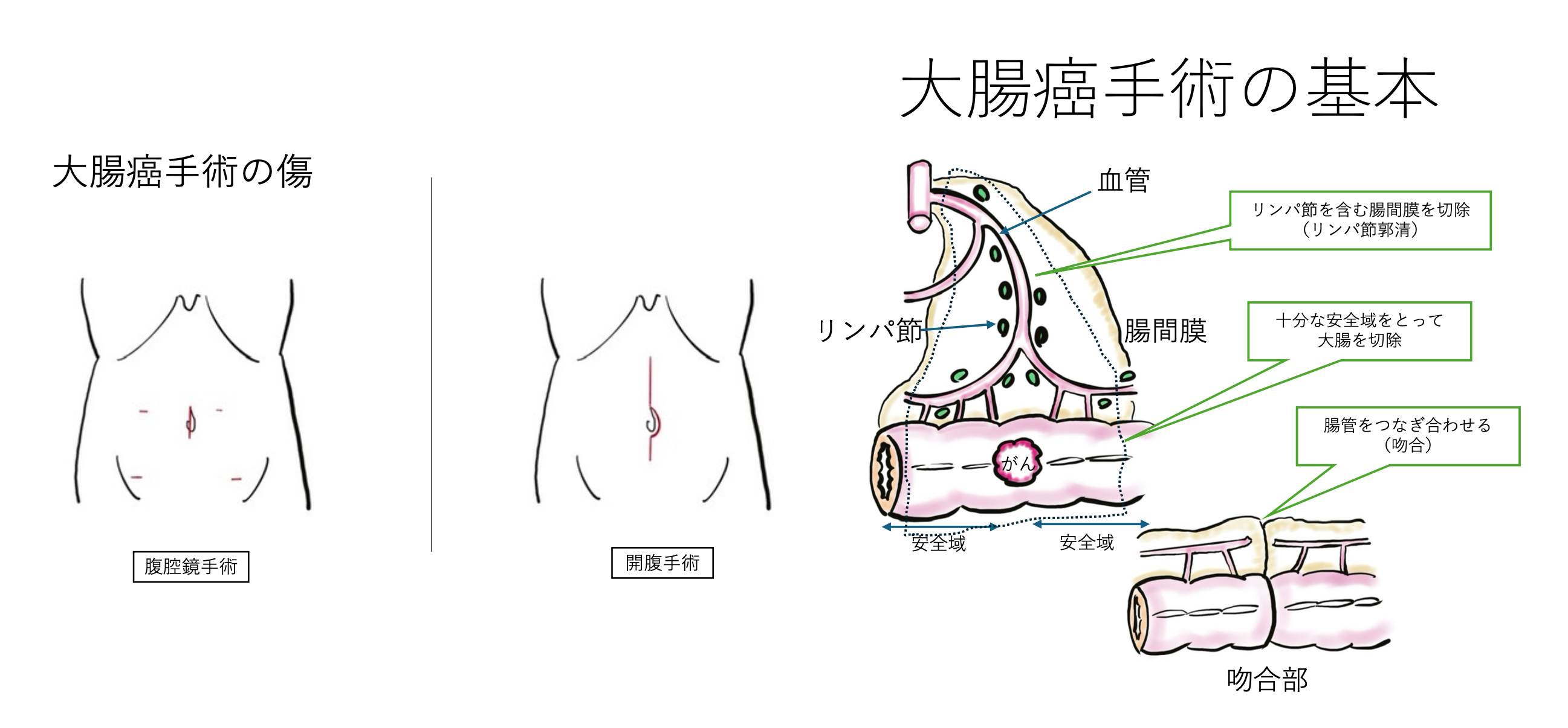腹腔鏡手術のメリットは、①創が小さく術後の痛みは開腹手術よりも少ないため、日常生活や仕事へ早く復帰することができる②創の痕が目立たない③腸の運動の回復も早いなどが挙げられます。