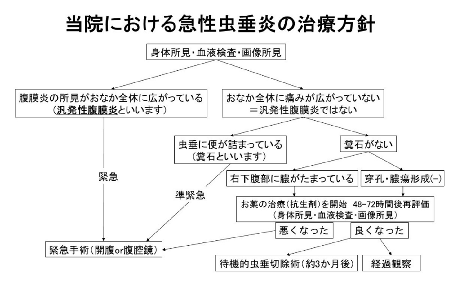 以下に具体的な当科での急性虫垂炎の治療方針について説明します。