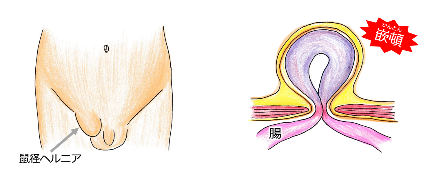 - 腸が索状物などで絞められる(絞扼性腸閉塞)