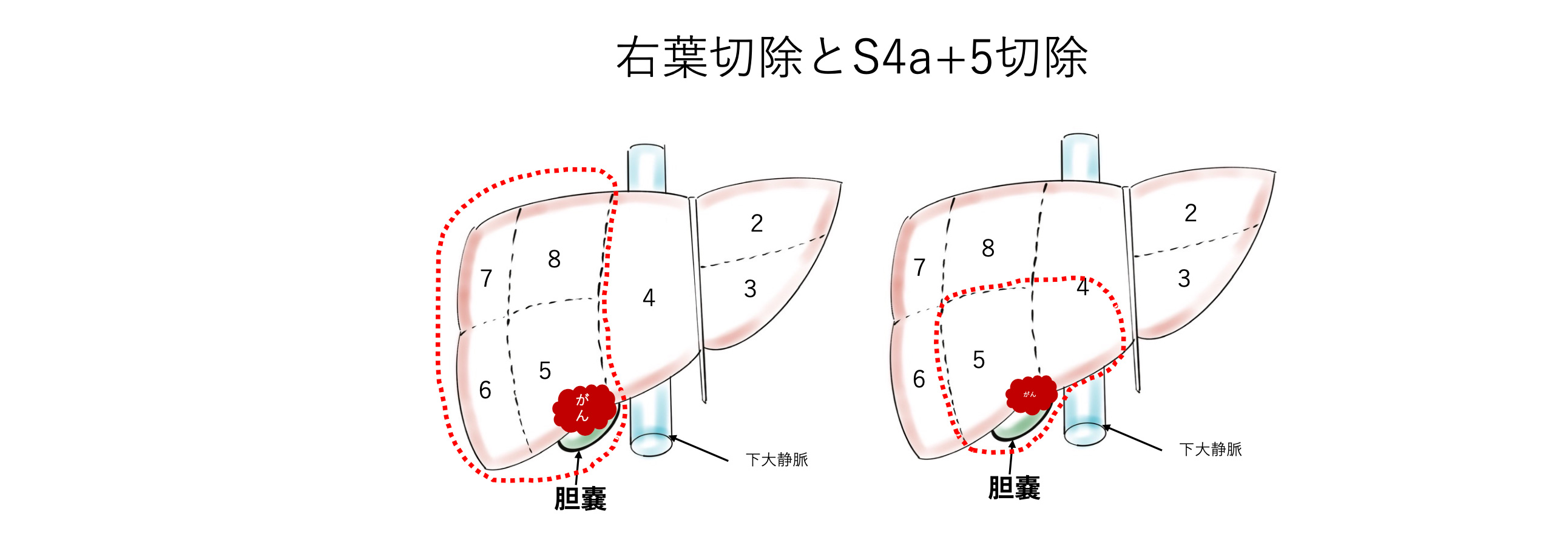 胆のうは肝臓に半分くっついているので、浸潤していることもあり、胆のうと共に肝臓を一部切除することがあります。