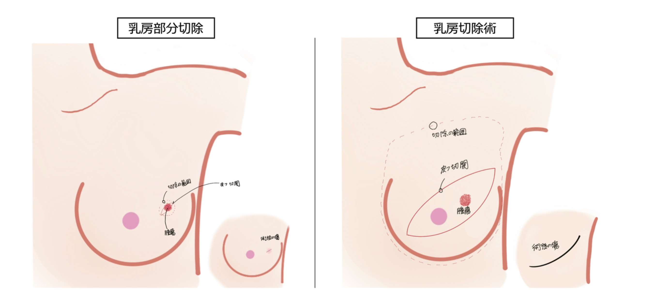 - 手術 手腫瘍を直接切除する方法です。乳房全体を切除する乳房切除術や、腫瘍のみを取り除く部分切除術があります。手術の選択は、腫瘍の大きさや位置、患者さんの希望によって決まります。