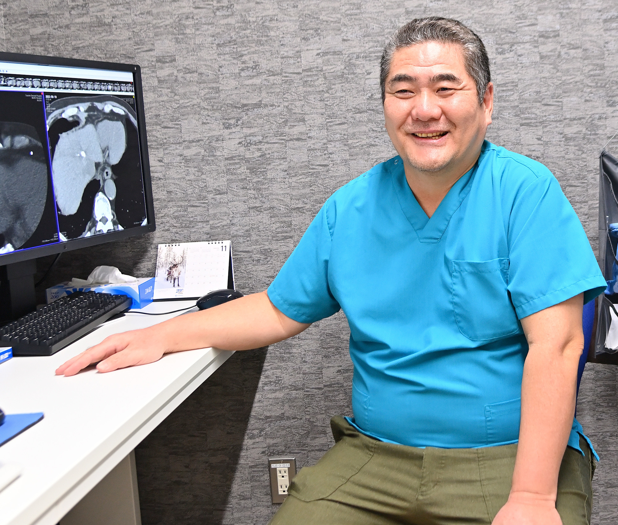 本装置では血管造影検査とCT検査が同一寝台で可能となり、治療精度・救命率の向上に寄与しています。IVRは主に局所麻酔で行うため低侵襲かつ短期入院で繰り返し行える利点があり、幅広い患者さんが治療対象となります。2023年9月からは、肺・腎臓・骨軟部腫瘍のラジオ波焼灼(RFA)治療が保険適応に拡大され、医療費の削減も期待され、今後ますますニーズが高まると思われます。