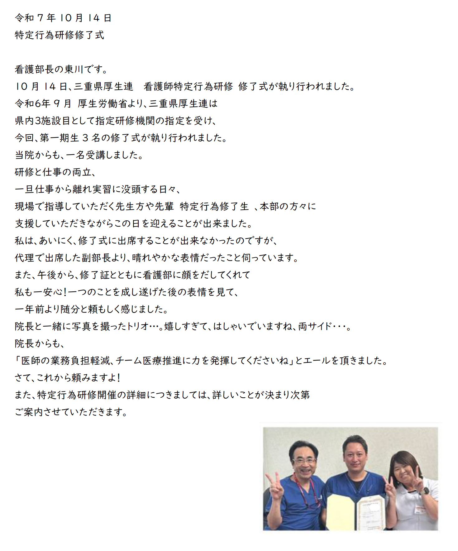 特定行為研修修了式