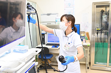 主に消化器外科・整形外科・泌尿器科・眼科の手術を年間1300件程度行っています。手術室は、4部屋あり予定手術から緊急手術まで対応できる体制です。最新器具の導入もあることから、看護の知識・技術の向上のため勉強会の開催や、院内外研修、学会参加も積極的に行っています。手術室看護で特に大切なことは、手術を受ける患者さんに寄り添った看護の実践です。当手術室では、術前より患者さんと関わっていきます。病棟看護師と情報共有しながら入院から手術、退院まで見据えたシームレスな看護を提供できることが当手術室の強みです。