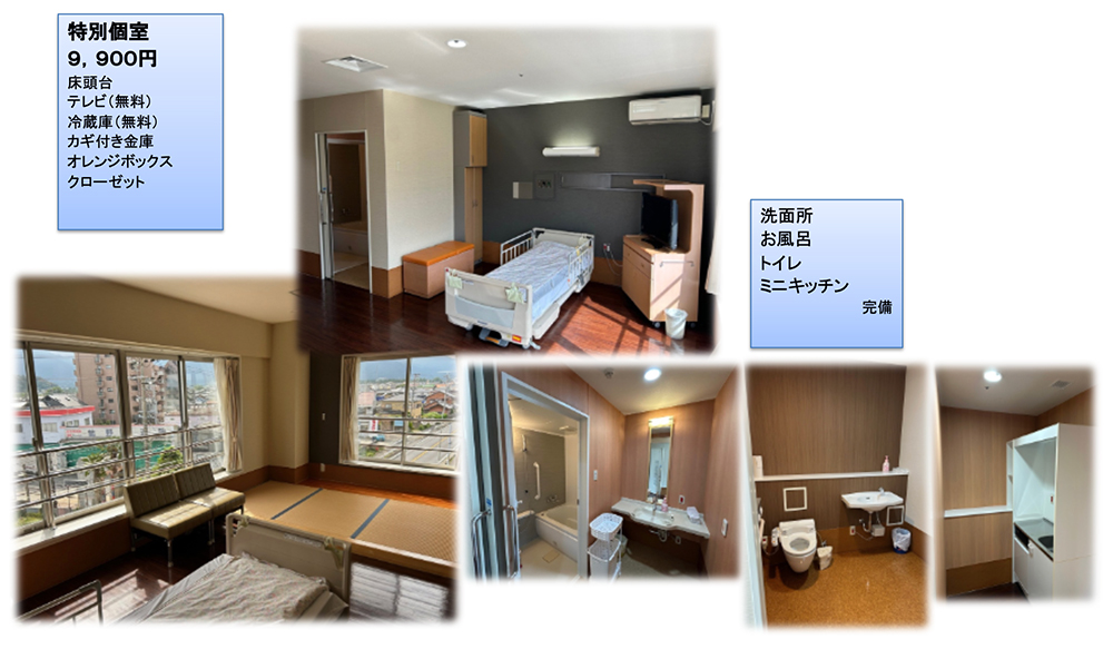 患者さんが安心して治療に専念できるよう療養環境をご用意しています。ご希望や病状に合わせて多様なタイプの病室からお選び頂きます。