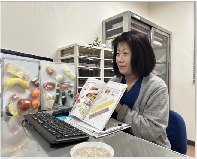 地域包括ケア病棟は、急性期治療後・整形外科疾患の治療、または介護者の休息のためのレスパイト入院の方を対象とした病棟です。入院患者さんの多くは、お元気なときと比べると、ADLの低下や食欲の低下など、何かしらの状態変化がみられます。そこで、患者さんの問題を多職種で話し合い、目標に向けてチームで介入しています。介護福祉士も多く配置しているため、日々のレクレーションは、個々の患者さんに合わせプランニングしています。また、看護師は患者さんとご家族の意思決定支援を行い、コーディネーターとしての役割を担っており、入院時から、退院後の生活を考えた入院プランの提案を行っていきます。